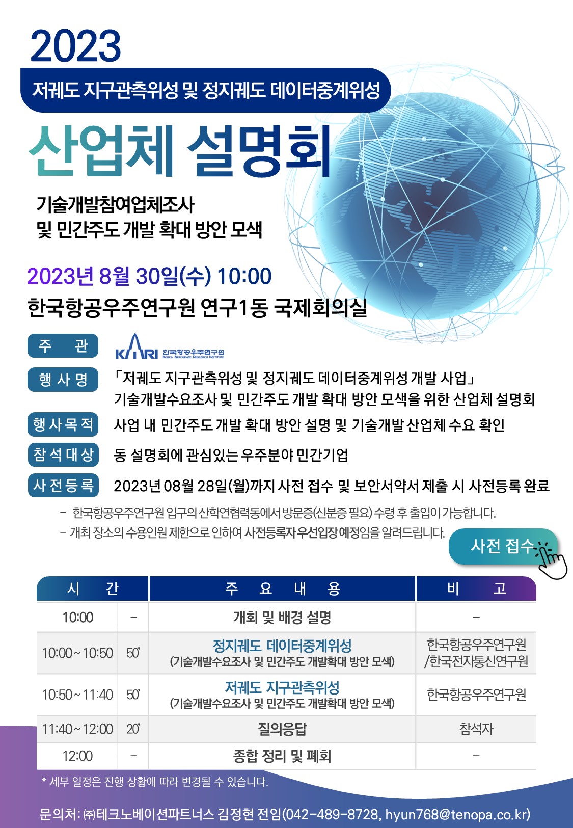 ''''저궤도 지구관측위성 및 정지궤도 데이터중계위성'''' 산업체 설명회 안내