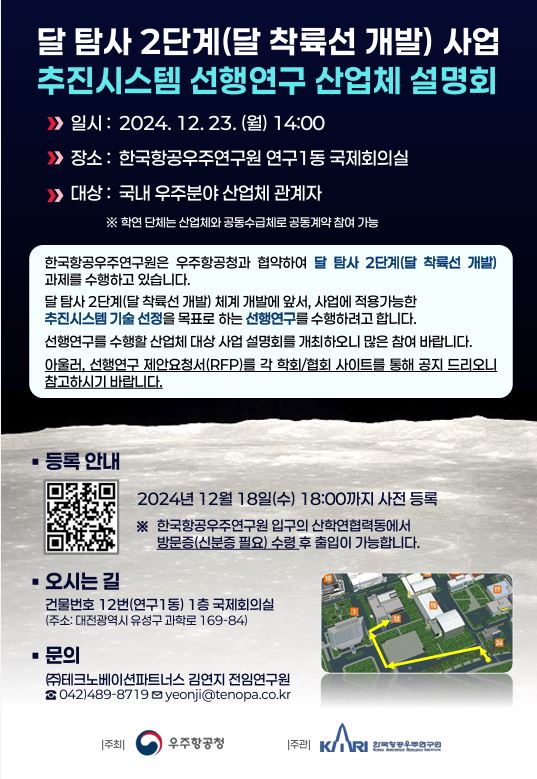 ‘달 탐사 2단계(달 착륙선 개발) 추진시스템 선행연구 산업체 설명회’ 안내