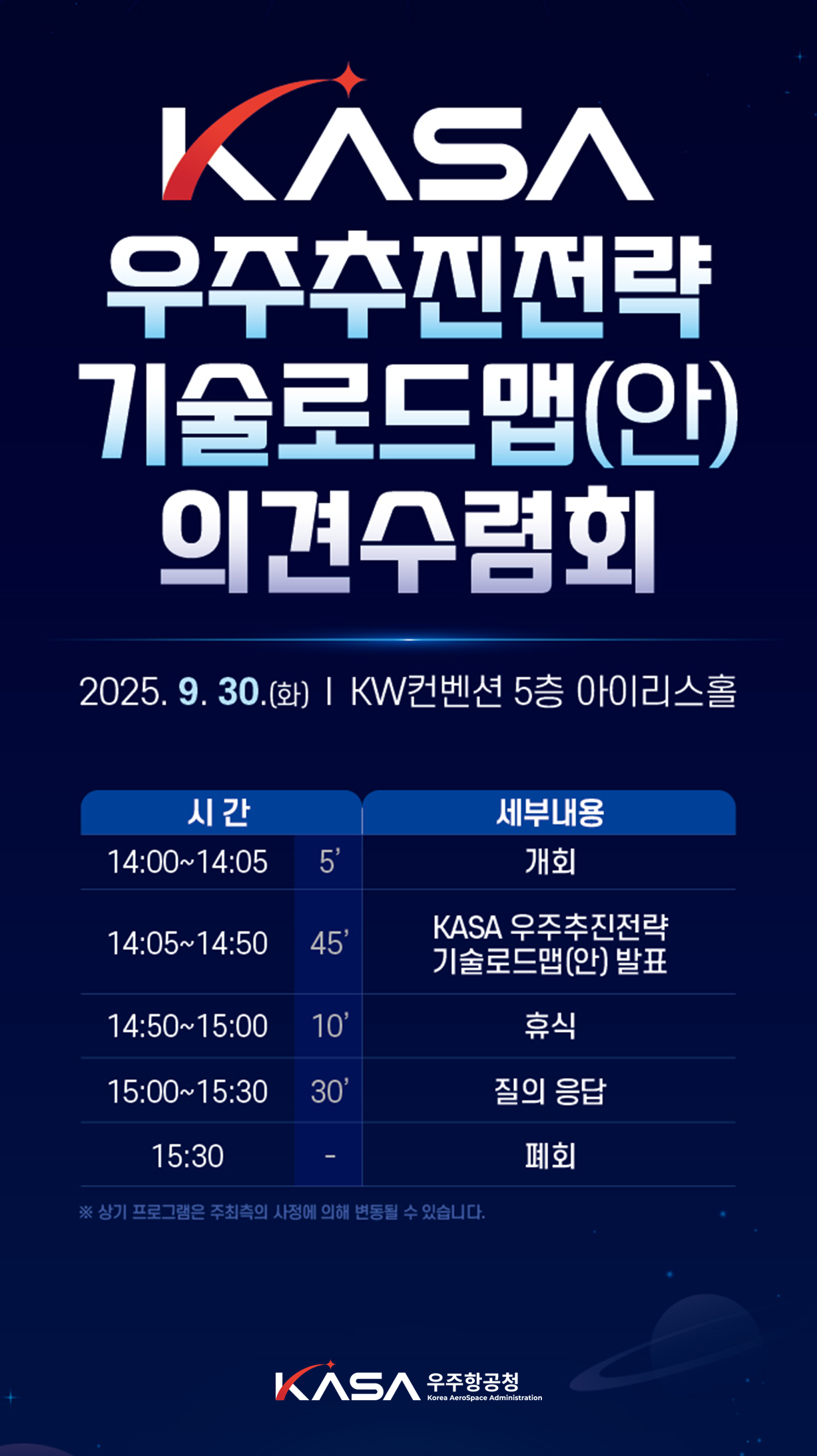 ○ (장 소) 대전 KW컨벤션 5층 아이리스홀 (온라인 : 우주항공청 공식 유튜브 채널 www.youtube.com/@kasamedia)