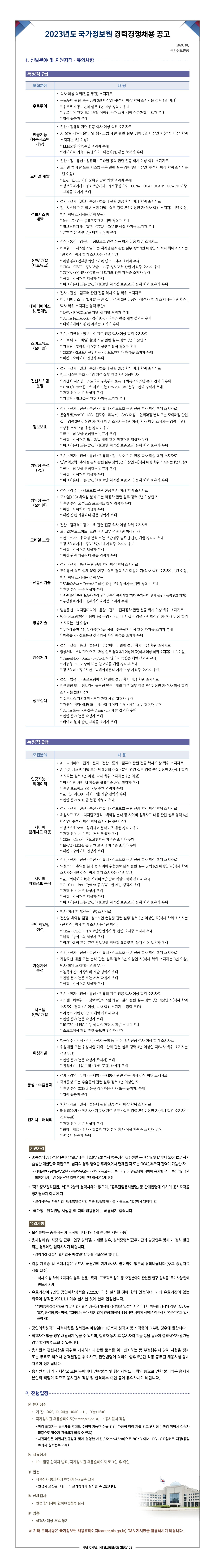 현재 원서접수중(~11.10)인 국가정보원 경력직 6ㆍ7급 채용 안내입니다.